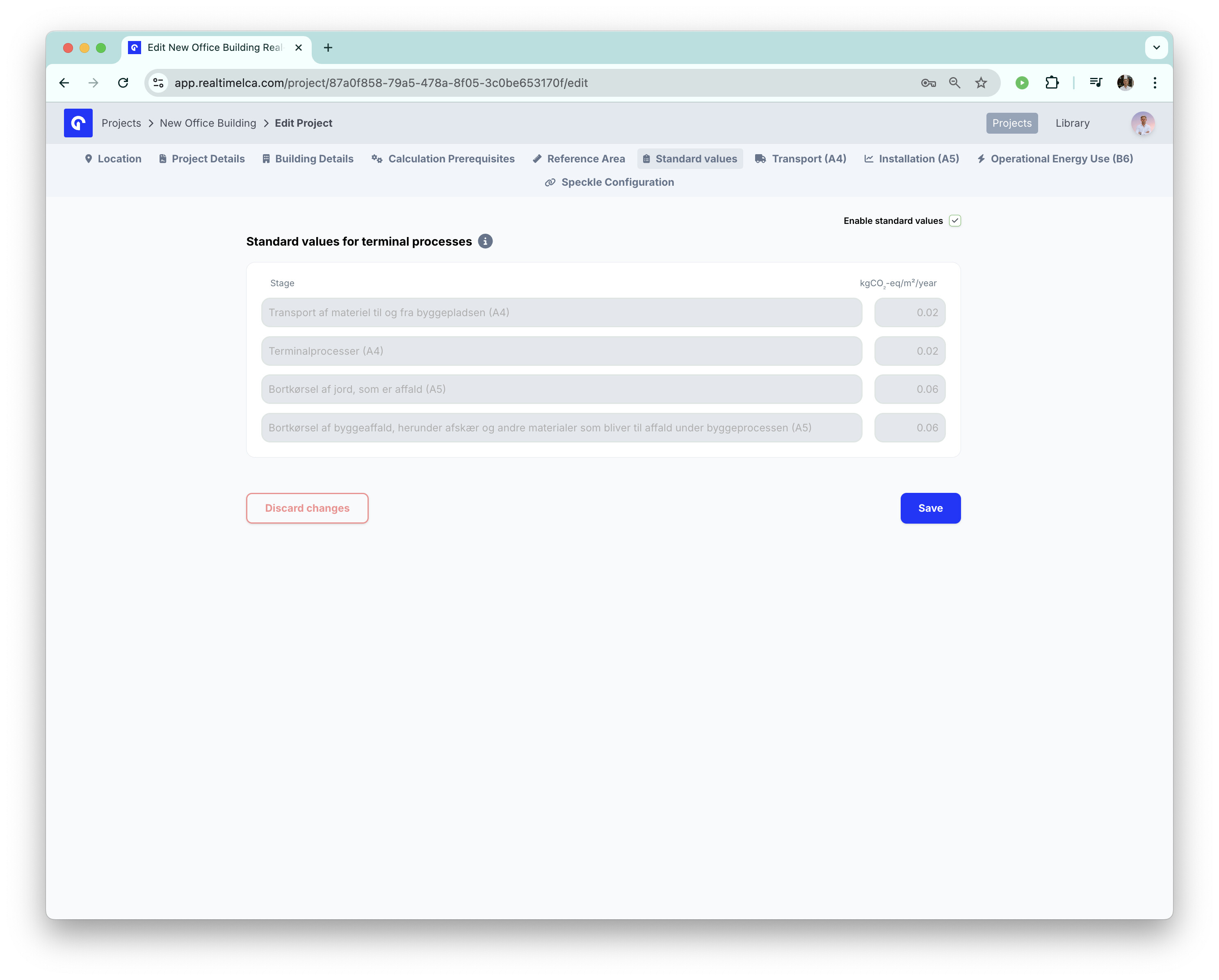 Standard Values for Terminal Processes: Now available for projects using the BR18 2025 calculation type