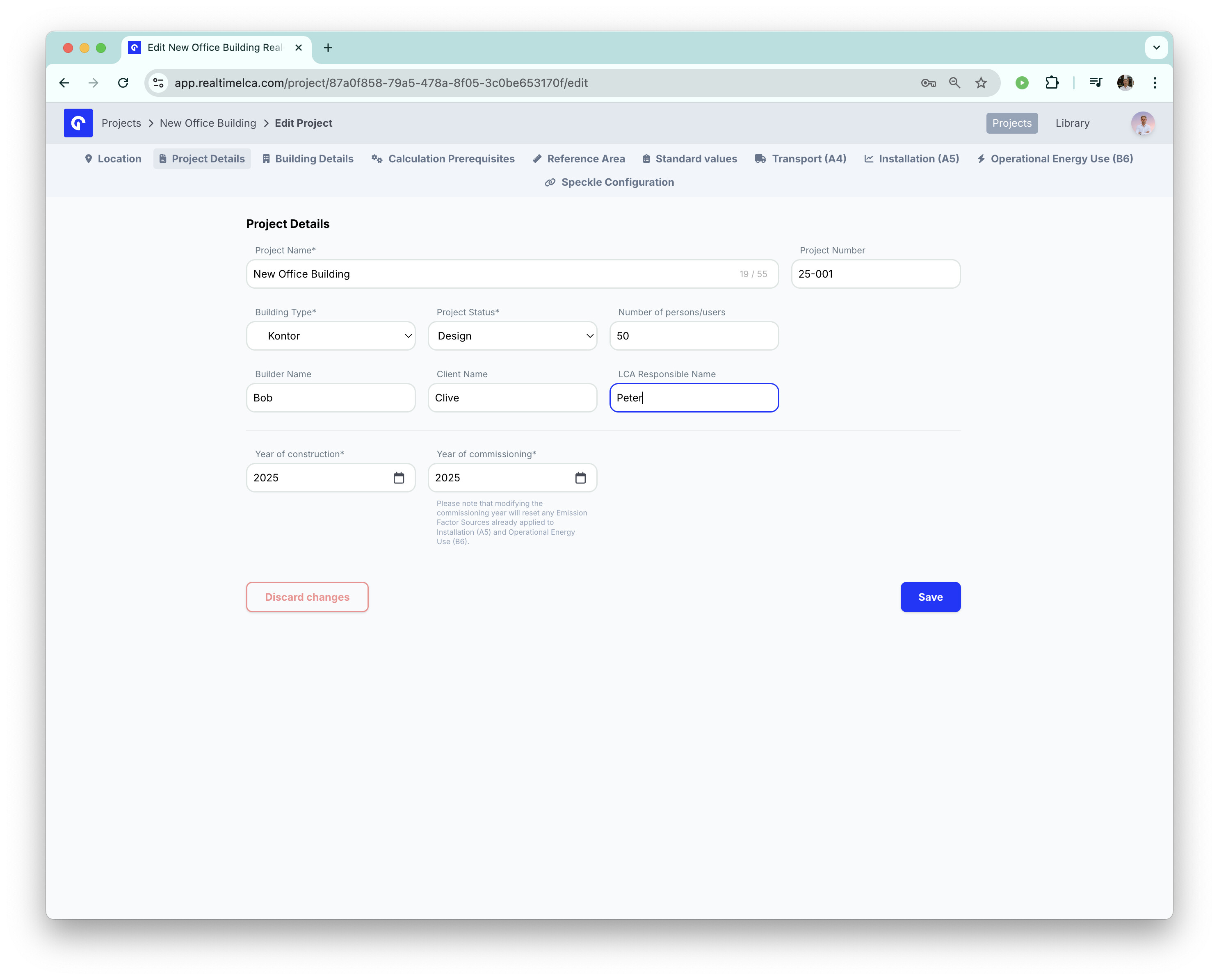 LCA Responsible: You can now designate a responsible person for the LCA directly in Project Settings.